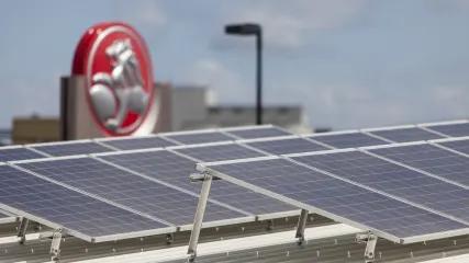 Installed on the roof of our sustainable car wash, solar panels convert sunlight into energy. The power generated via solar is used to power the car wash facility.