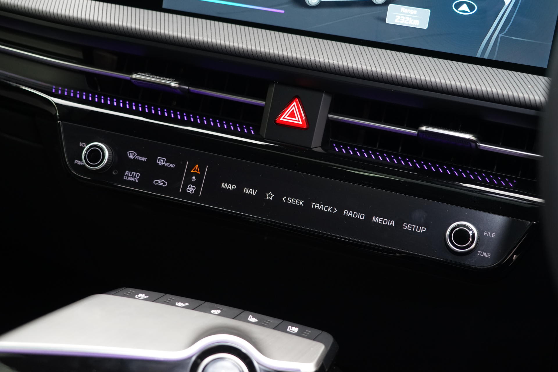 The entire range of Kia vehicles comes equipped with a comprehensive suite of active safety technology as standard. This includes autonomous emergency braking with intersection support, adaptive cruise control, lane-keep assist, lane following assist, blind-spot monitoring, rear cross-traffic alert, traffic sign recognition, and a centre airbag positioned between the front occupants.