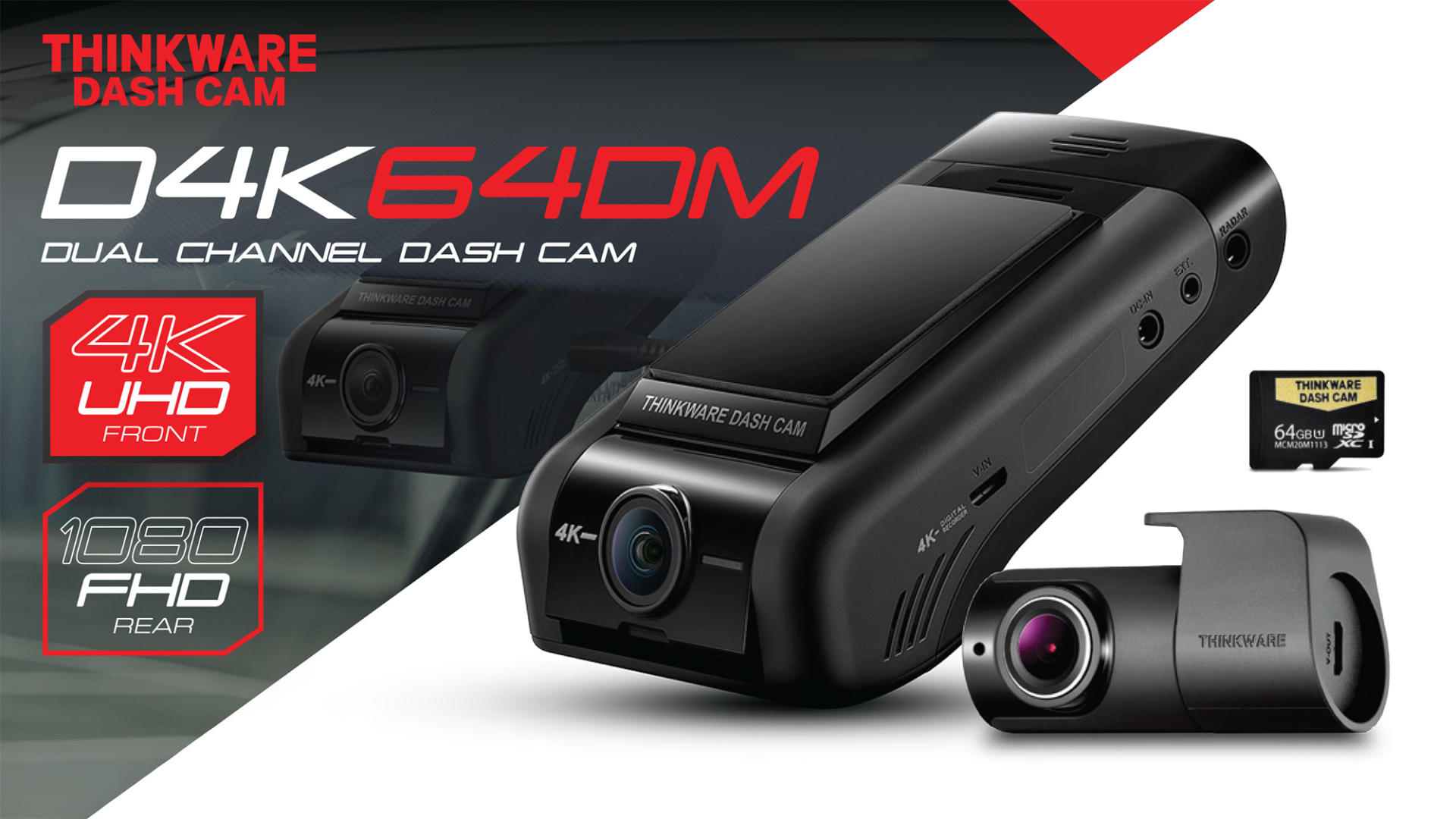 The Thinkware D4K64DM Dash Cam delivers crystal-clear 4K recording with a wide-angle front and rear view, ensuring every detail is captured day or night.