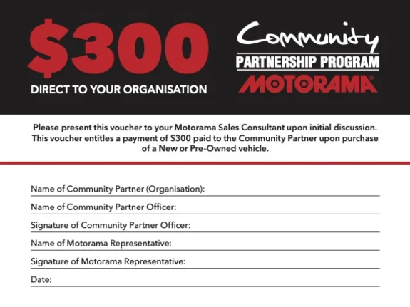 The Community Partnership Program benefits charities, small businesses and local community organisations whenever staff, members, or parents purchase their car through any of Motorama's dealerships.